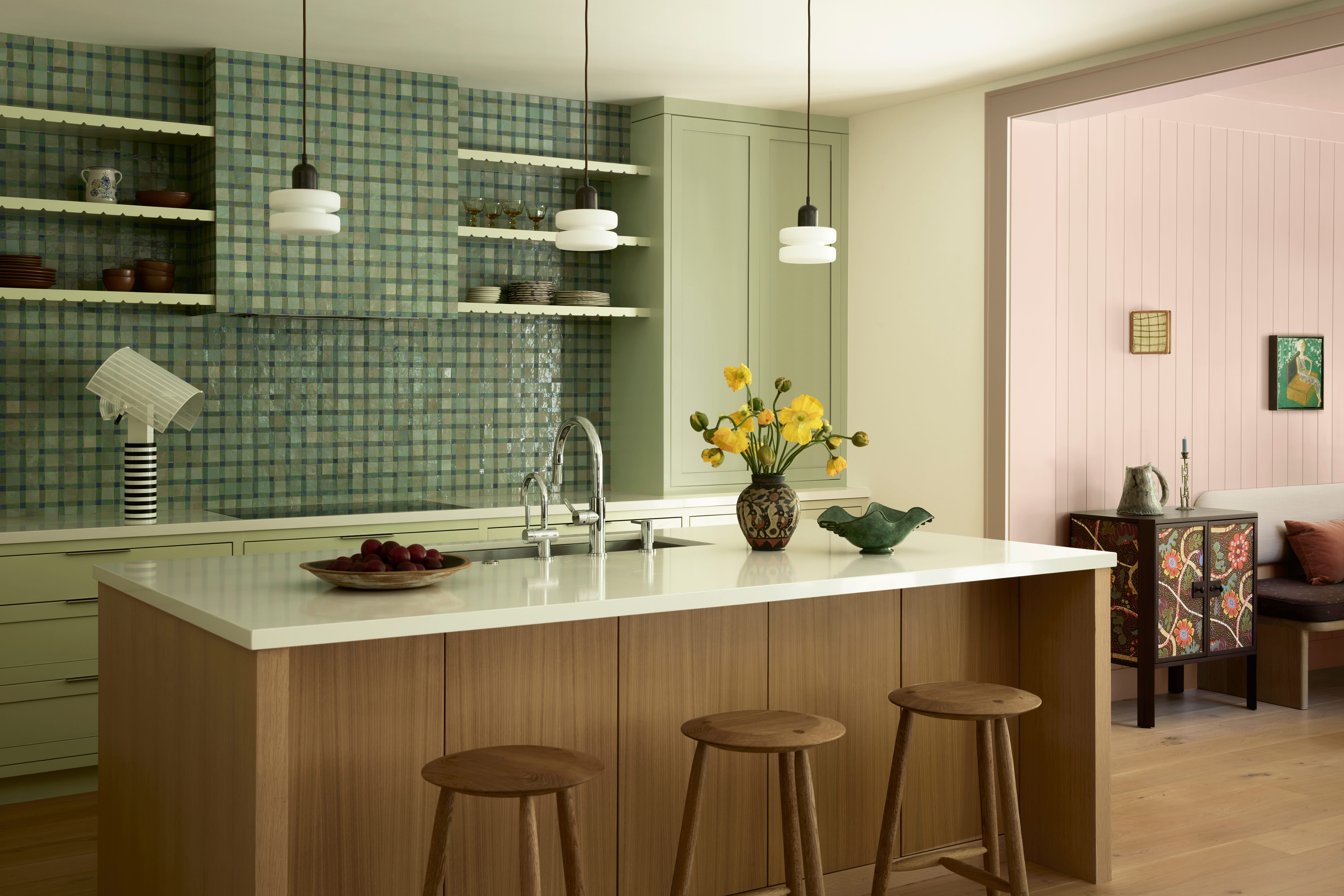 Our concept for the color story was a spring garden seen through San Francisco’s fog—soft, moody, and ethereal hues that wash through the rooms like light silk, punctuated by bold graphic moments that give the house pulse and contrast.